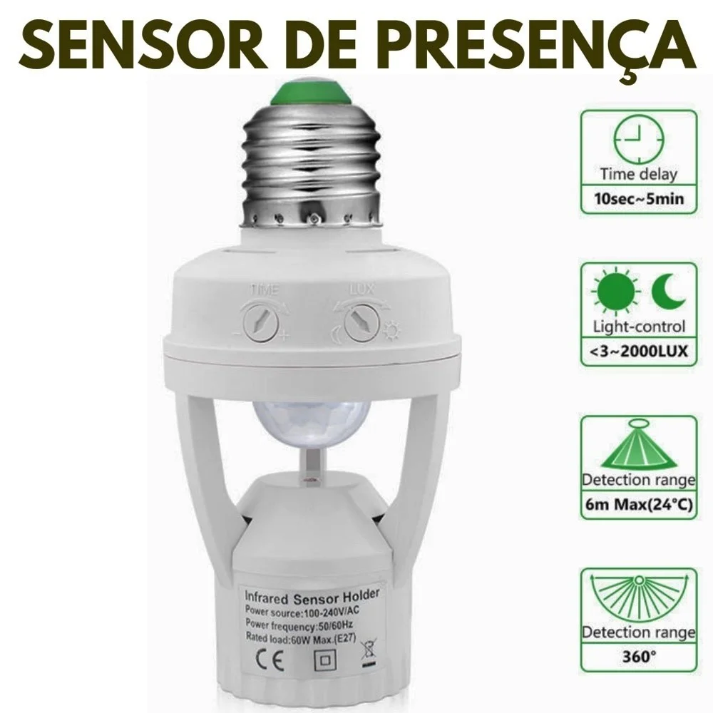 -Economize tempo e energia instalando este sensor de presença de acionamento automático.Assim que for detectado------